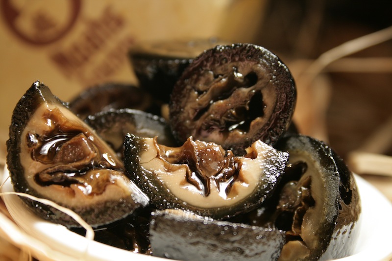 Grüne unreife  Walnüsse werden   in einem Sirup  eingelegt und mit Nelken, Kardamom und   Zimt fein gewürzt.